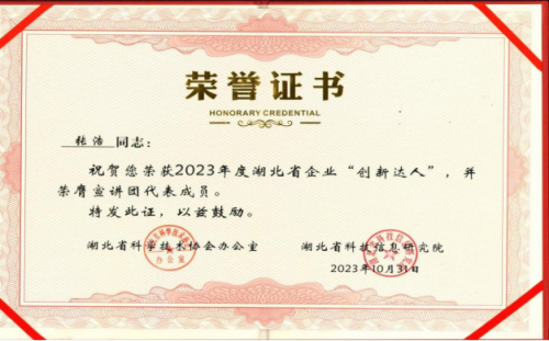 張浩同志榮獲2023年湖北省企業(yè)“創(chuàng)新達(dá)人”稱號